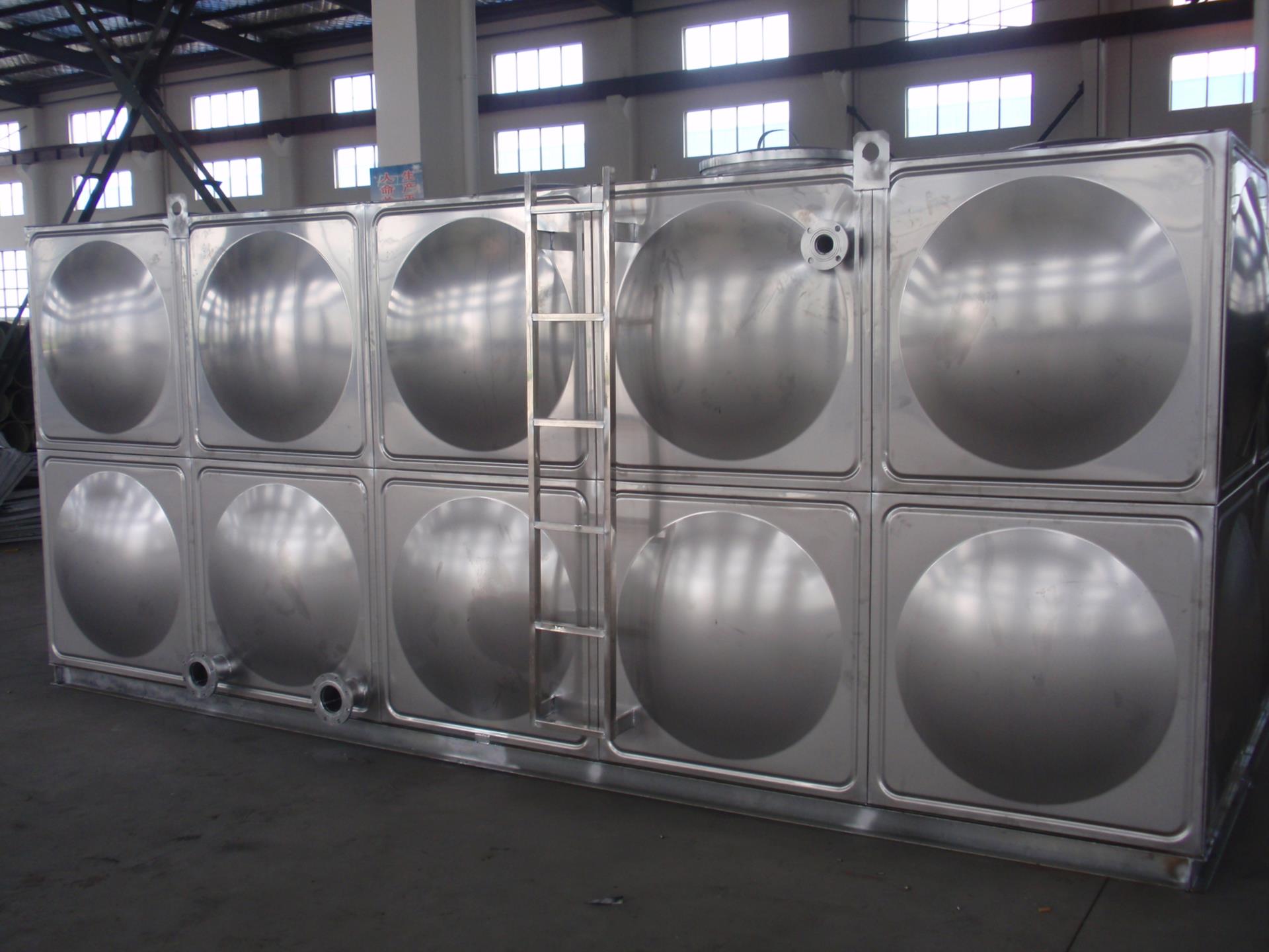 不銹鋼水箱多為方形組合式水箱。采用SUS304、SUS316L 、SUS444等不銹鋼板,沖壓成型。 一般沖壓成三種尺寸,分別是1x1米、1x0.5米和0.5x0.5米三種,周邊用鎢極氬弧焊接,具有強(qiáng)度高、重量輕、成本低、環(huán)保衛(wèi)生等特點(diǎn)。制造標(biāo)準(zhǔn)為國(guó)家建筑標(biāo)準(zhǔn)12s101設(shè)計(jì)圖集。